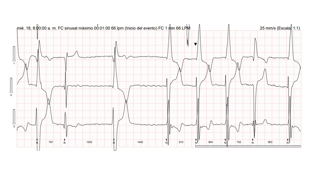 Figura 2. Fragmento de holter electrocardiográfico con taquicardia ventricular (fuente propia)